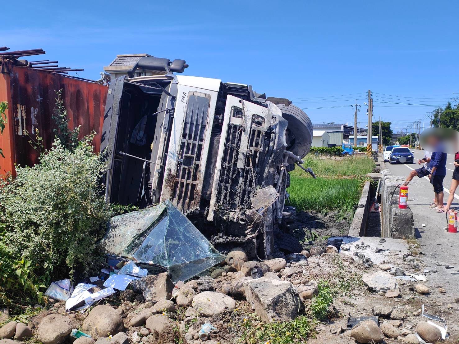 駕駛精神不濟釀禍! 苗栗通霄曳引車翻覆路邊稻田