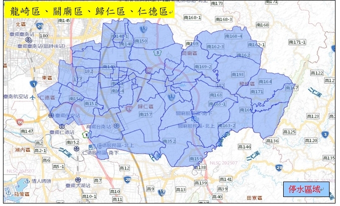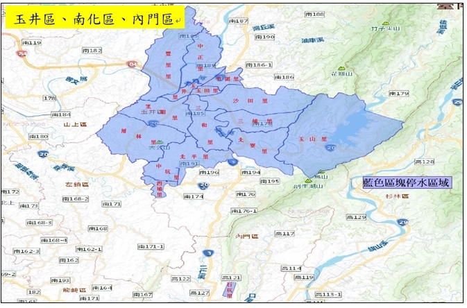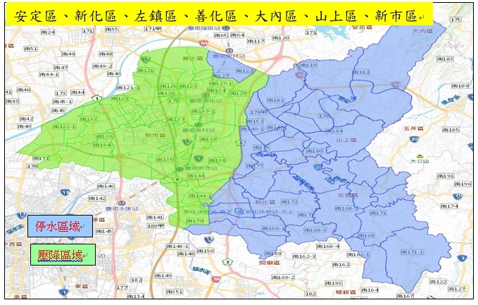 5. 新市區 : 除大社里(國3以東)、潭頂里(國3以東)停水外,其餘里均壓降