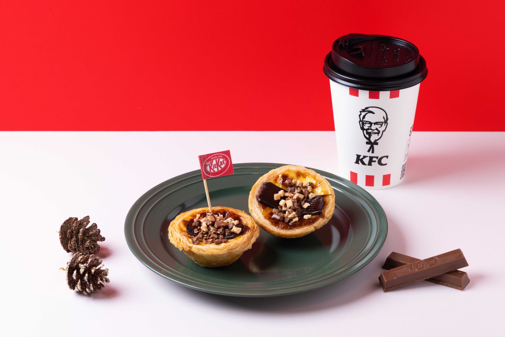 ▲「奇巧可可流心三重奏蛋撻」把肯德基及KITKAT®兩大品牌的DNA發揮到極致。(圖/業者提供)