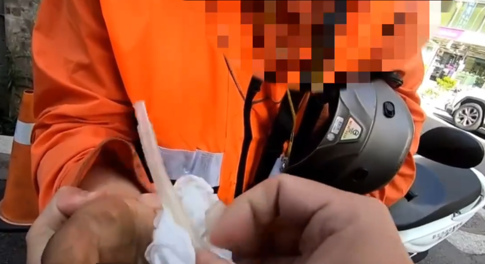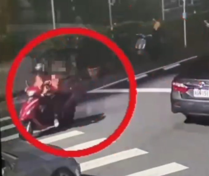 陳姓男子(紅圈處)騎機車替同事買便當回程時因違規被警攔查發現毒駕。翻攝畫面