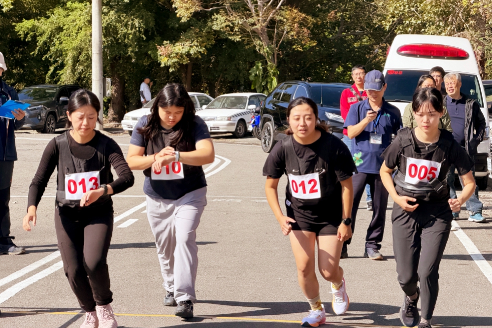 ▲林保署新竹分署115年度森林護管員甄試舉行為期2天術科及筆試測驗,今日術科測驗女性考生進行負重跑走測驗。(圖/林保署新竹分署提供)