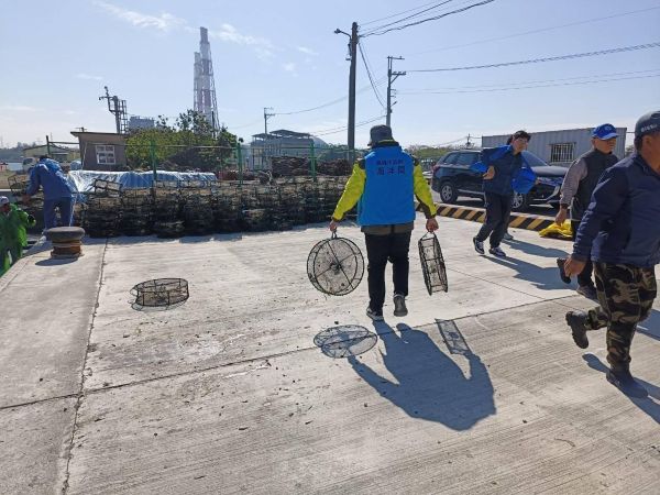 圖4 :海洋局同仁協助集中違規籠具。