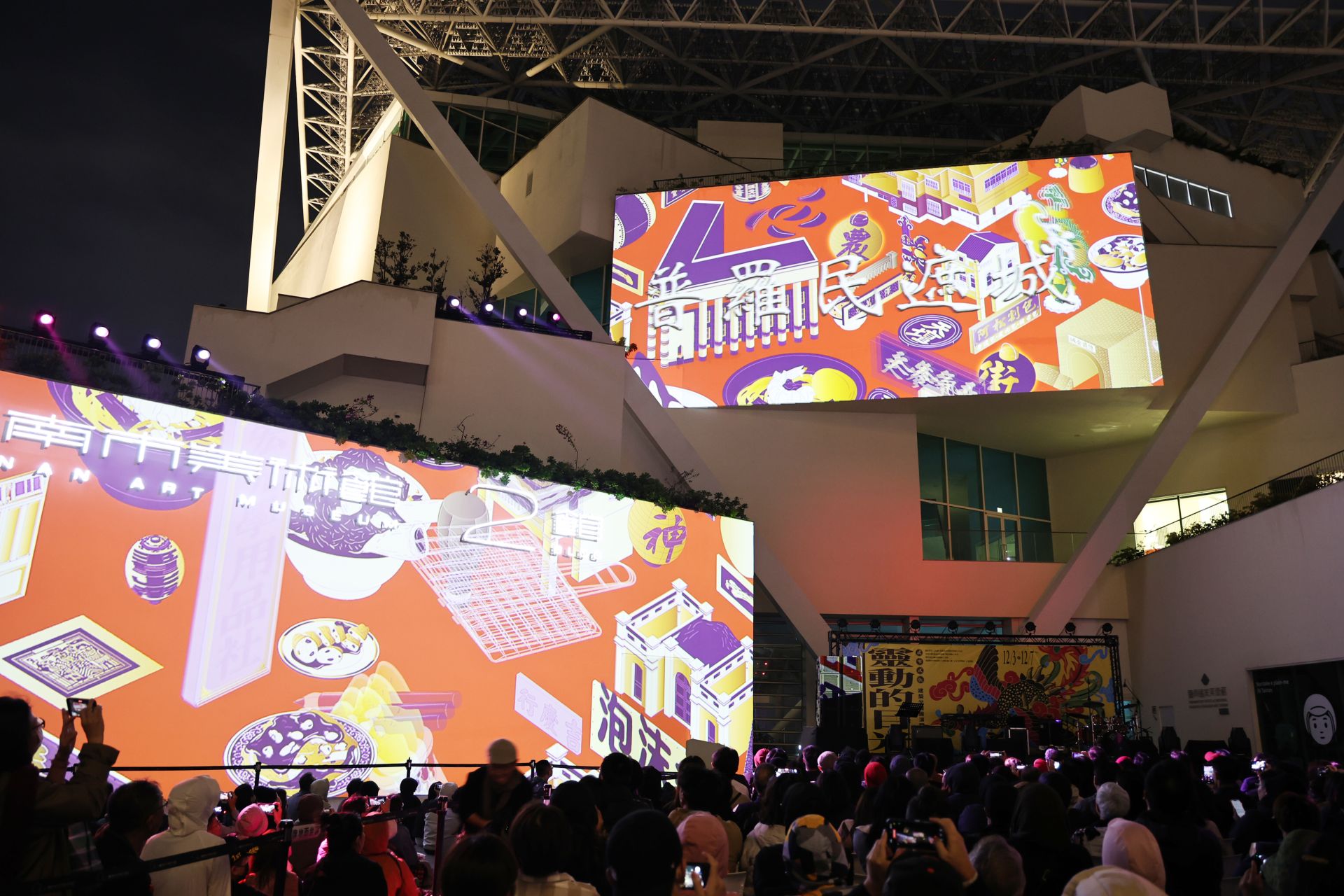今日晚間 6 點半舉辦的光雕音樂會,以「站在這裡,這裡就是家」為主題,匯聚跨界卡司:金曲台語歌后李竺芯、饒舌教父大支以及朱頭皮爵士樂團聯合演出。朱頭皮也擔任主持人,用台語旁白串起音樂與光影的節奏,市議員沈震東、陳怡珍、朱正軒,李啟維出席,立委林俊憲服務處及各市議員服務處亦派代表到場共襄盛舉。