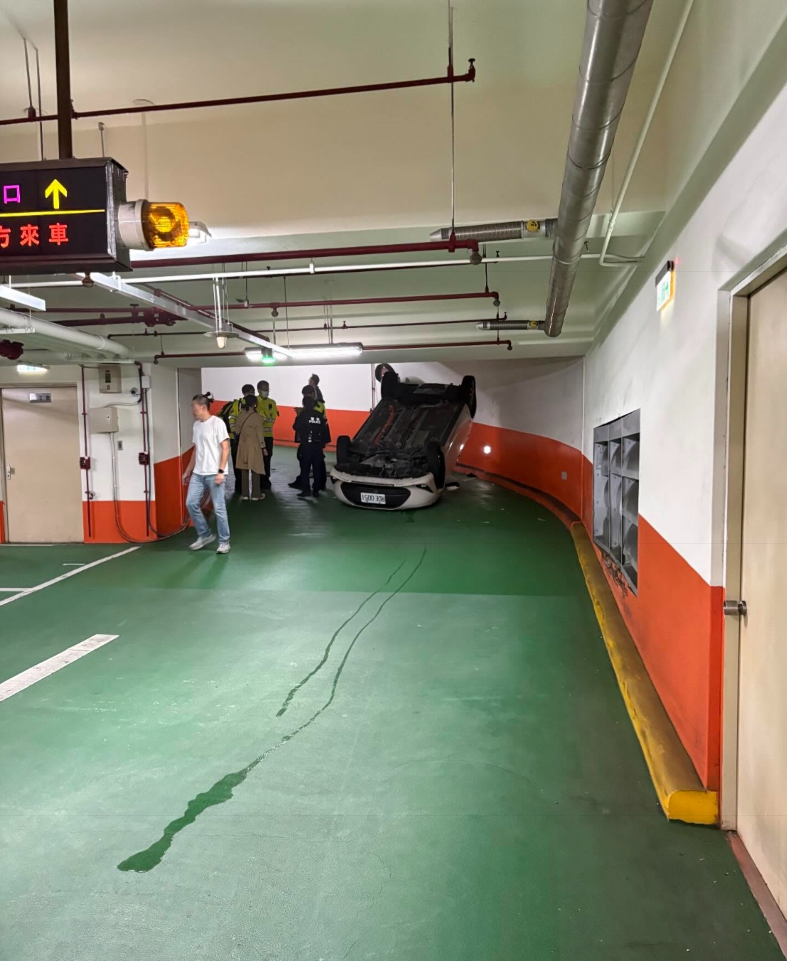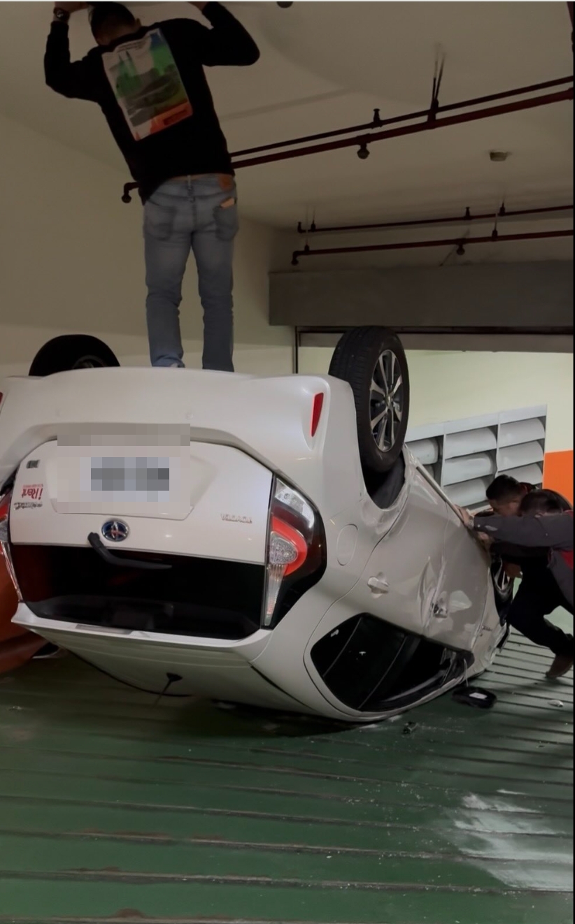 地下停車場也能翻車!租賃車四輪朝天躺平 網友傻眼:這什麼神技能