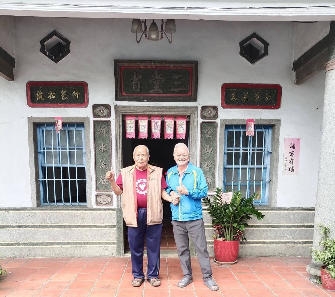 來訪期間,他主動希望能在三間屋前合影。他說自己非常喜歡這座「三省堂」老屋,也喜歡屋內懸掛的那句名言——「未晚先投宿、雞鳴早看天」。一句話竟彷彿喚醒他少年時的時光與家風。