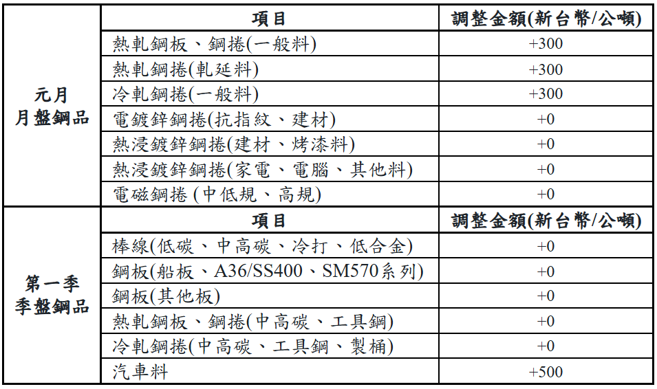 【視傳媒記者吉雄世高雄報導】中鋼公司元月份月盤及第一季季盤產品以平高盤開出,並依產業需求特性持續推動多元方案,共同努力確保接單量能。
