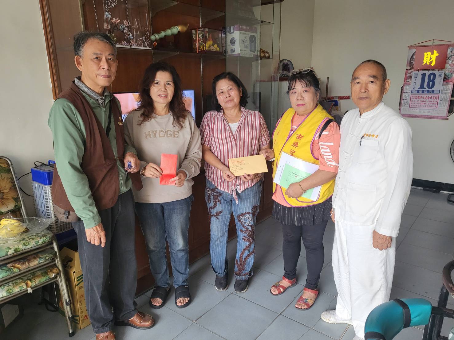 然而,先生於114年12月5日病逝,讓馬愛花頓失依靠,生活陷入困境。為協助她渡過難關,財團法人高雄市宏道社會福利基金會、高雄市慈緣慈善會、高雄市心願慈善會、林群峰大德、善心人士、高雄市南勝聖母慈善會、蔡師兄、南勝聖母堂副堂主等善心團體與人士,攜帶慰問金前往探視,並由羅昱晴里長陪同,表達最誠摯的關懷。