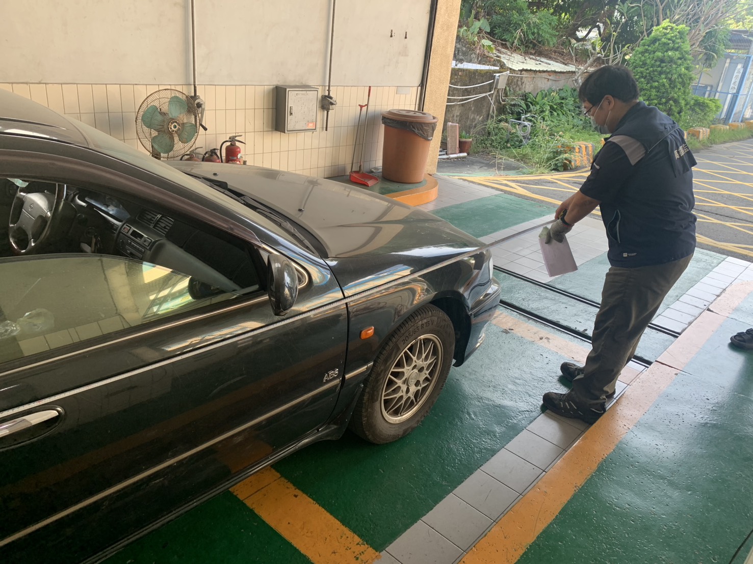(圖說:圖1-檢驗員測量車輛車身長度)
