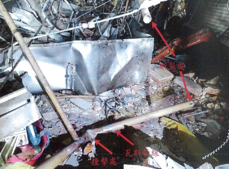 氣爆現場管線撞擊及斷裂等相關位置。台中地檢署提供