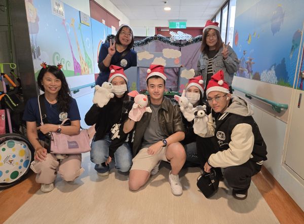 活動尾聲出現溫馨插曲,有兩名因午睡而錯過演出的病童,在家人陪同下趕至現場,因此文藻學生臨時加碼演出,讓孩子近距離與手偶互動,也逗得祖孫三代笑聲不斷。病童的祖母笑著說,孫子不會說英文的Merry Christmas,只會說「美美」聖誕快樂,也成為這場病房聖誕活動最動人的一句祝福。