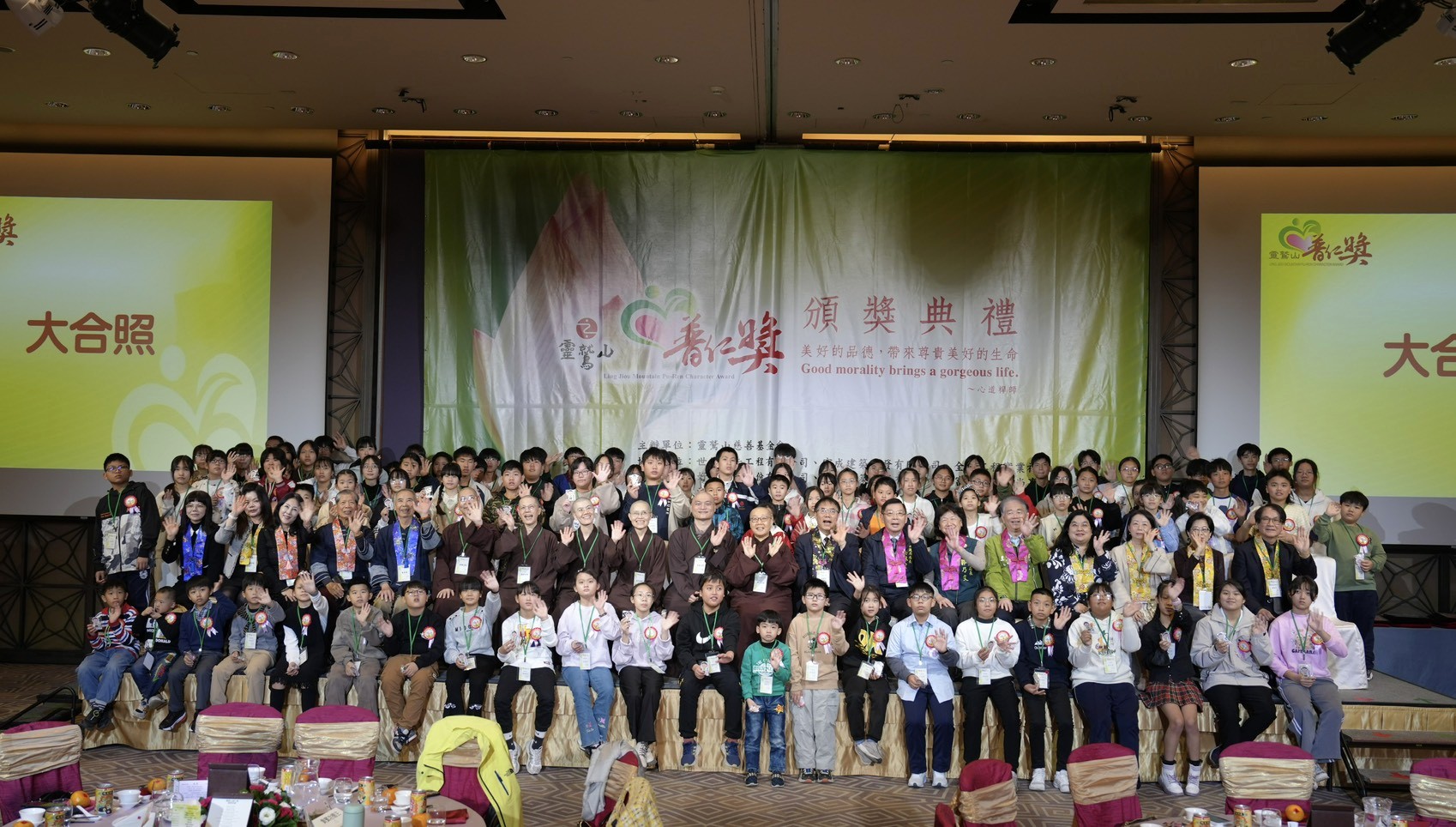 ▲靈鷲山台南區普仁獎頒獎典禮溫馨圓滿,共有118位孩子獲獎,其中7位學生更入圍全國普仁獎。(圖/主辦單位提供)