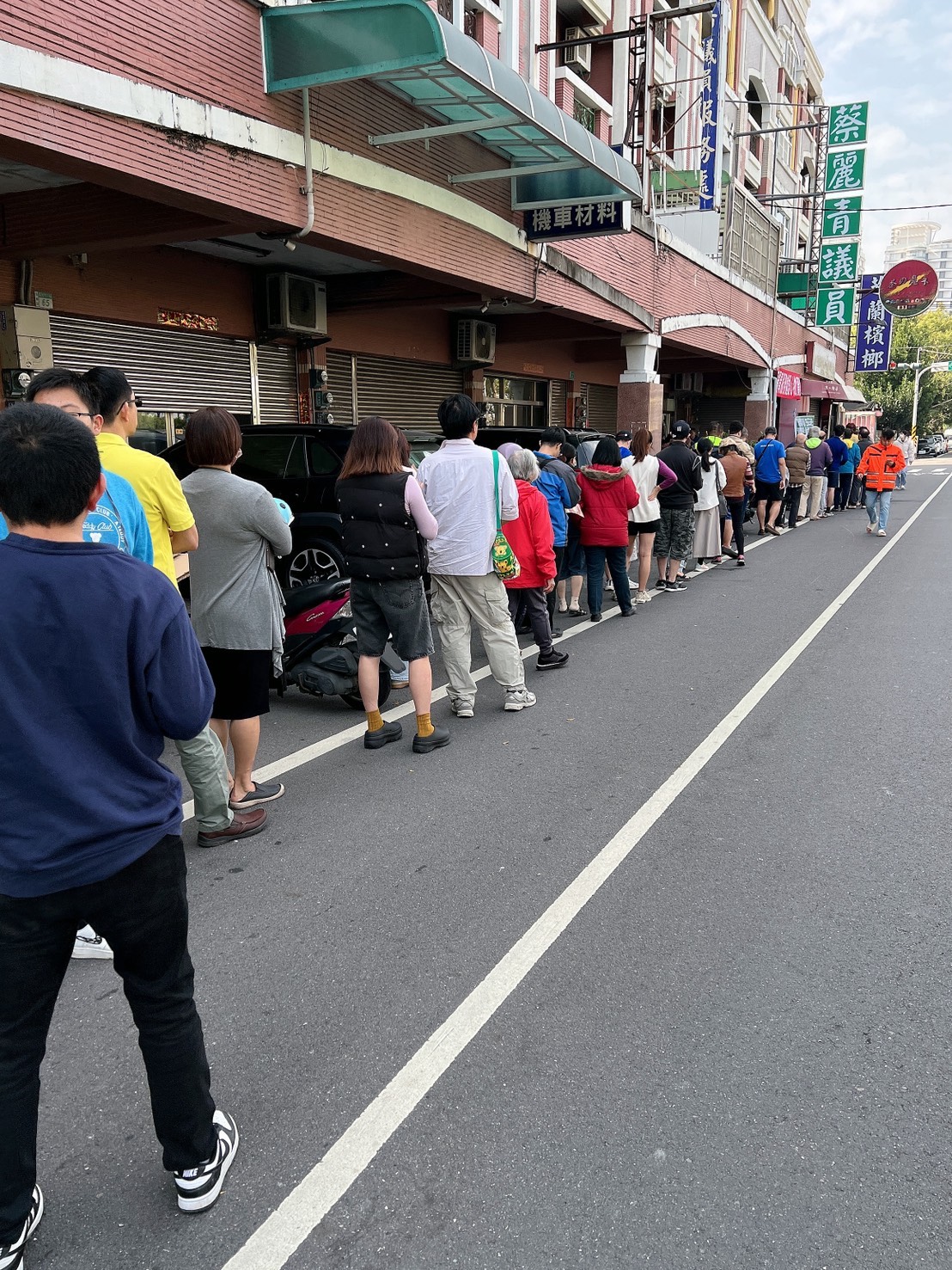 ▲市議員蔡麗青發台灣尚勇春聯,民眾大排長龍。(市議員蔡麗青 提供)