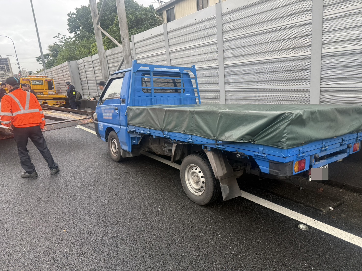 故障停外線車道遭追撞的小貨車。翻攝畫面