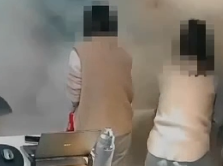 安養院人員拿滅火器撲滅火勢。翻攝畫面