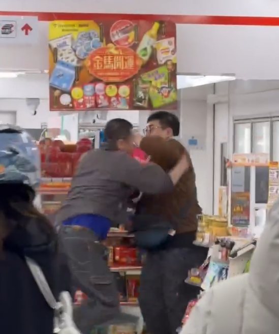 兩名男子在超商內推擠。翻攝畫面