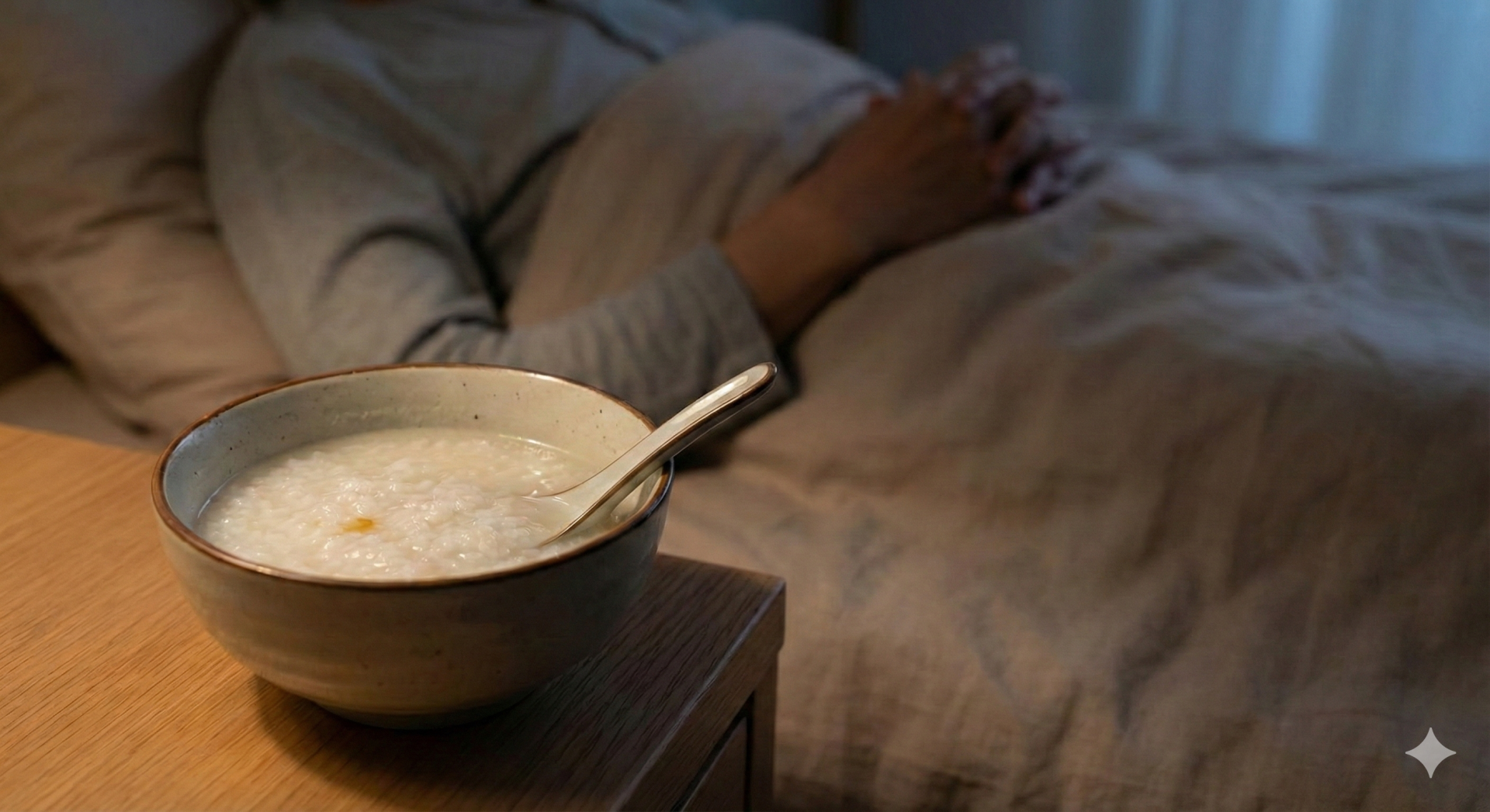 ▲「那碗始終沒能吃完的粥,是他在用最後的力氣告訴我們:『請放下焦慮,讓我輕盈地走。』」 /AI示意圖