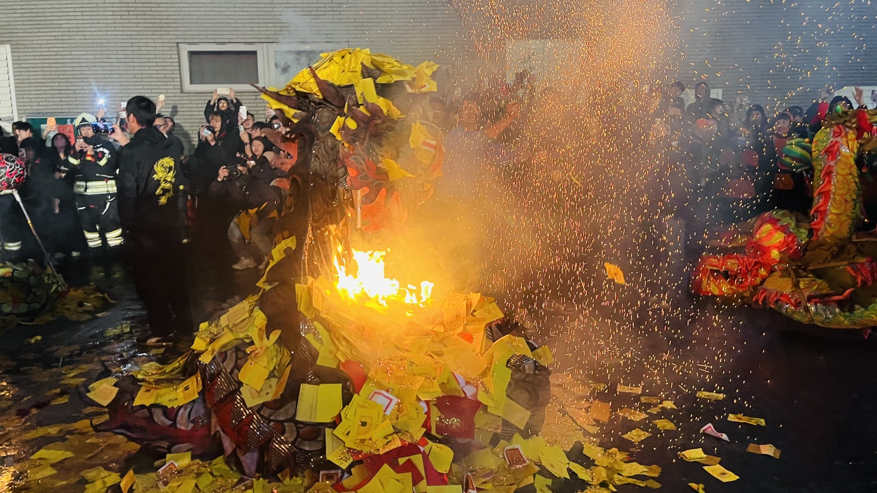 3月5日晚間壓軸登場的「化龍返天」,是整個火旁龍儀式最莊嚴神聖的時刻。當夜色漸沉,祥龍在鑼鼓聲中緩緩集結完成最後巡行,龍身在燈火映照下熠熠生輝。隨著余文忠市長恭讀奏疏,眾人合十祝禱,奏章化為火光,龍隊恭敬接引聖火,龍首昂揚、龍身盤旋,在煙霧與火光中象徵功成圓滿、返天復命。