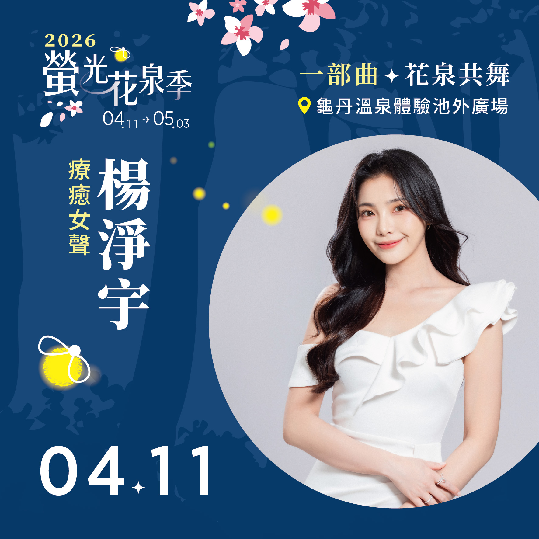 觀光旅遊局局長林國華表示,開幕活動內容豐富多元,4月11日邀請李子森、楊淨宇登台演出,4月12日則由吳美琳接力開唱;兩日活動並安排街頭藝人輪番演出,包括奇幻魔術秀、小丑氣球秀、東方戲法秀及夢幻泡泡秀等,營造熱鬧歡樂氛圍。此外,現場推出限額免費「螢花泉彩繪體驗」,將於明(4月10日)上午9時開放線上報名,名額有限,歡迎民眾把握機會踴躍參加。