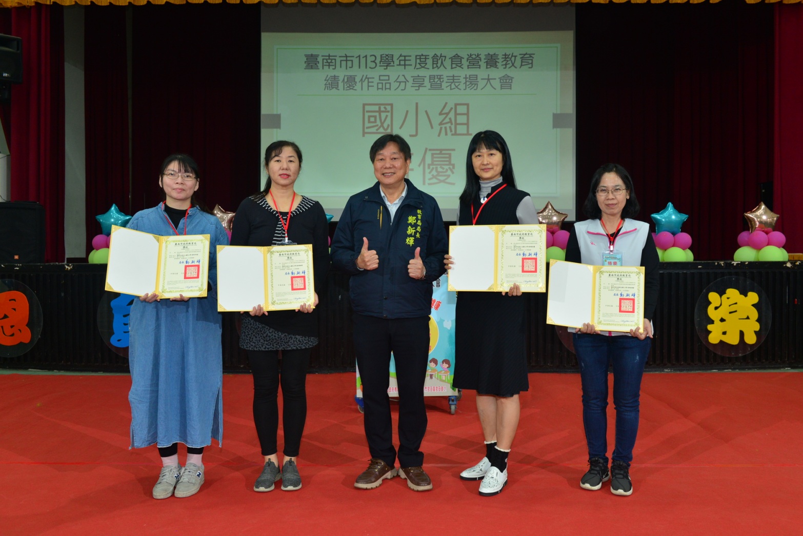 「您今天吃對了嗎?」臺南市政府教育局重視學生「聰明吃‧健康選」的能力,特別辦理首屆「飲食營養教育教案徵選活動」,並彙集優秀的教學資源,今(27)日於官田國小辦理飲食營養教育教案分享暨表揚大會,由教育局鄭新輝局長頒獎表揚獲獎教師,各校並進行績優教案的分享交流,期盼能提升教師與學生對於飲食營養教育的相關知能。